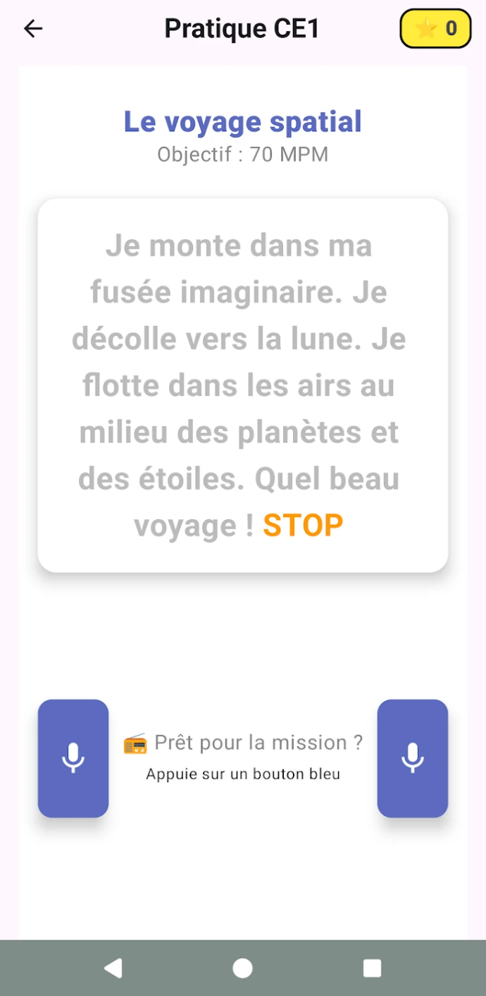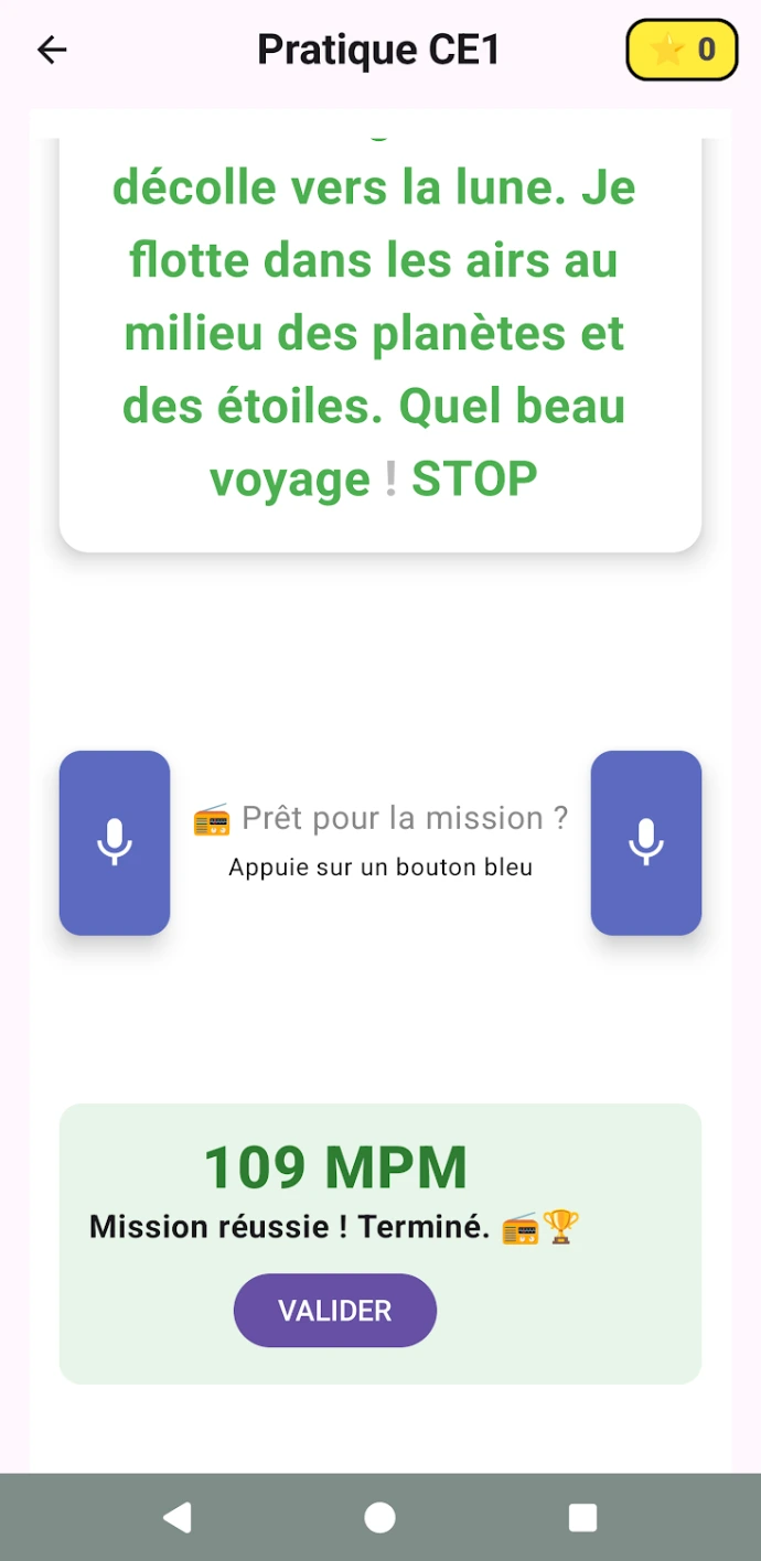 Objectif 40 / 50 / 55 / 60 / 65 / 70 mots de lecture par minute.